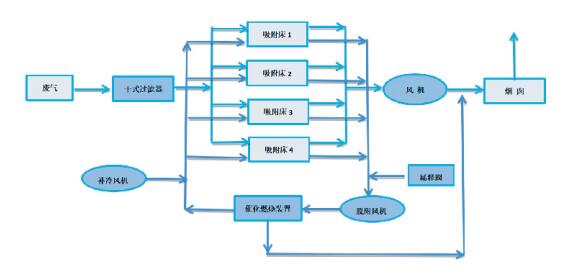 3) امتصاص الكربون المنشط، تجديد تطهير الغاز الساخن - الاحتراق التحفيزي.