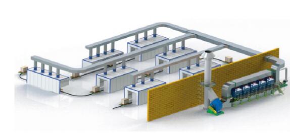 يتم إرسال غاز العادم إلى ممتص الكربون المنشط عن طريق مروحة سحب الهواء. تحت تأثير قوة فان دير فالس، يتم التقاط المذيب العضوي الموجود في غاز العادم وامتصاصه بواسطة المسام الدقيقة الموجودة في الكربون المنشط. بعد تشبع الكربون المنشط بالامتصاص، يتم تجديده. يتم تنقية غاز العادم عن طريق امتصاص الكربون المنشط ومن ثم يتم تفريغه بشكل نظيف.