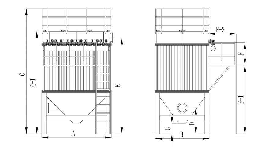 ملاحظة: نظرًا لقيود الموقع أو قيود النقل، قد يختلف عدد القواديس الخاصة بمجمعات غبار الأكياس النبضية: 1 أو أكثر، وما إلى ذلك. يمكن تجهيز منفذ التفريغ بصمامات هوائية وصمامات كهربائية ومفرغات أوتوماتيكية.